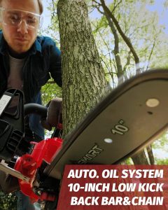 PowerSmart electric chainsaw 20V battery powered, cordless chain saw with 10 inch chain and rod