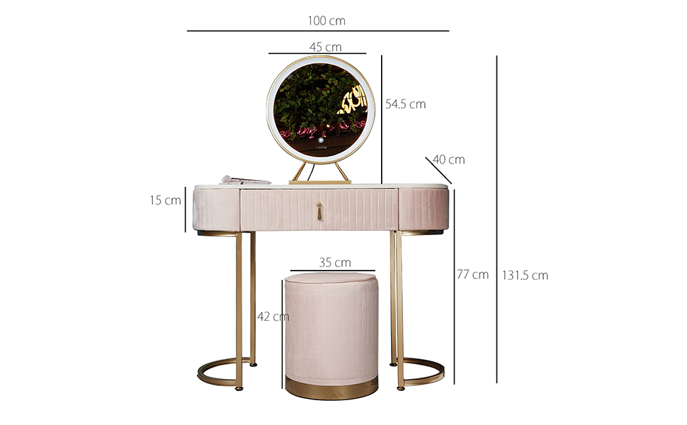 Home / 【Furniture】Velvet Dressing Table with LED Light Mirror Touch Sensor 1 Drawer Stool Set Bedroom Modern Dresser